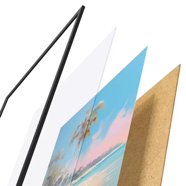 Plakāts sastāv no rāmja, pleksstikla, iespiestā attēla un skaidu plātnes pamatnes. Plakātu var uzreiz piekarināt pie sienas, pateicoties aizmugurē esošajiem stiprinājumiem.