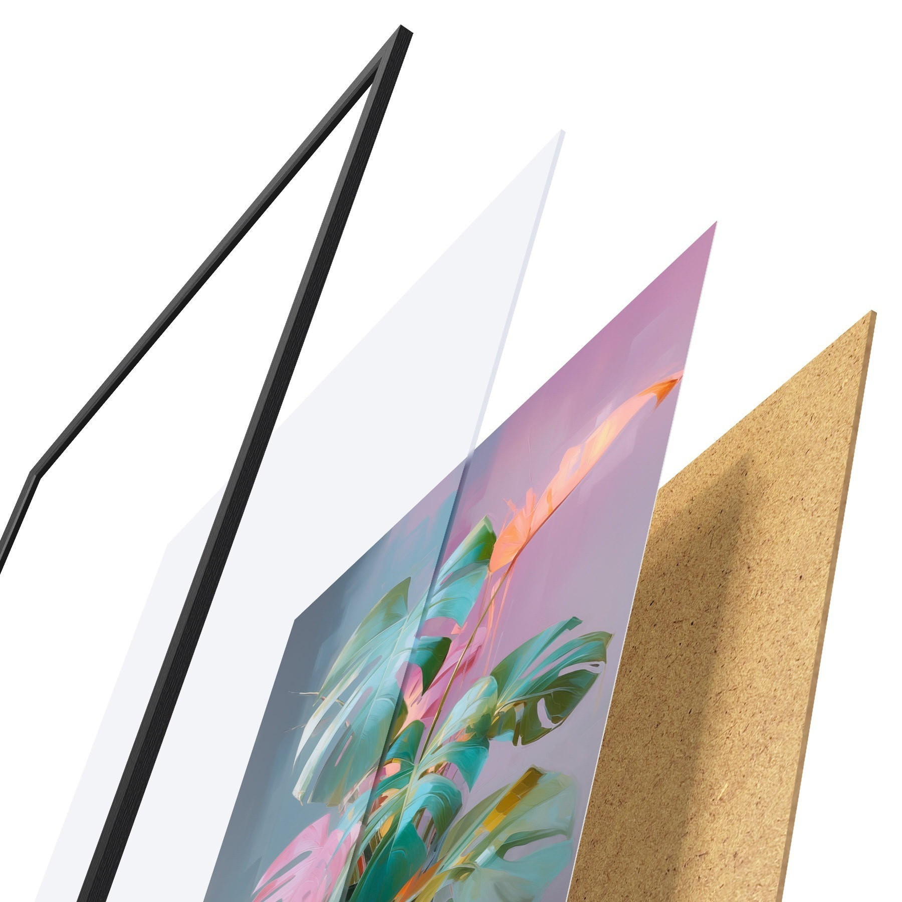 Plakāts sastāv no rāmja, pleksstikla, iespiestā attēla un skaidu plātnes pamatnes. Plakātu var uzreiz piekarināt pie sienas, pateicoties aizmugurē esošajiem stiprinājumiem.