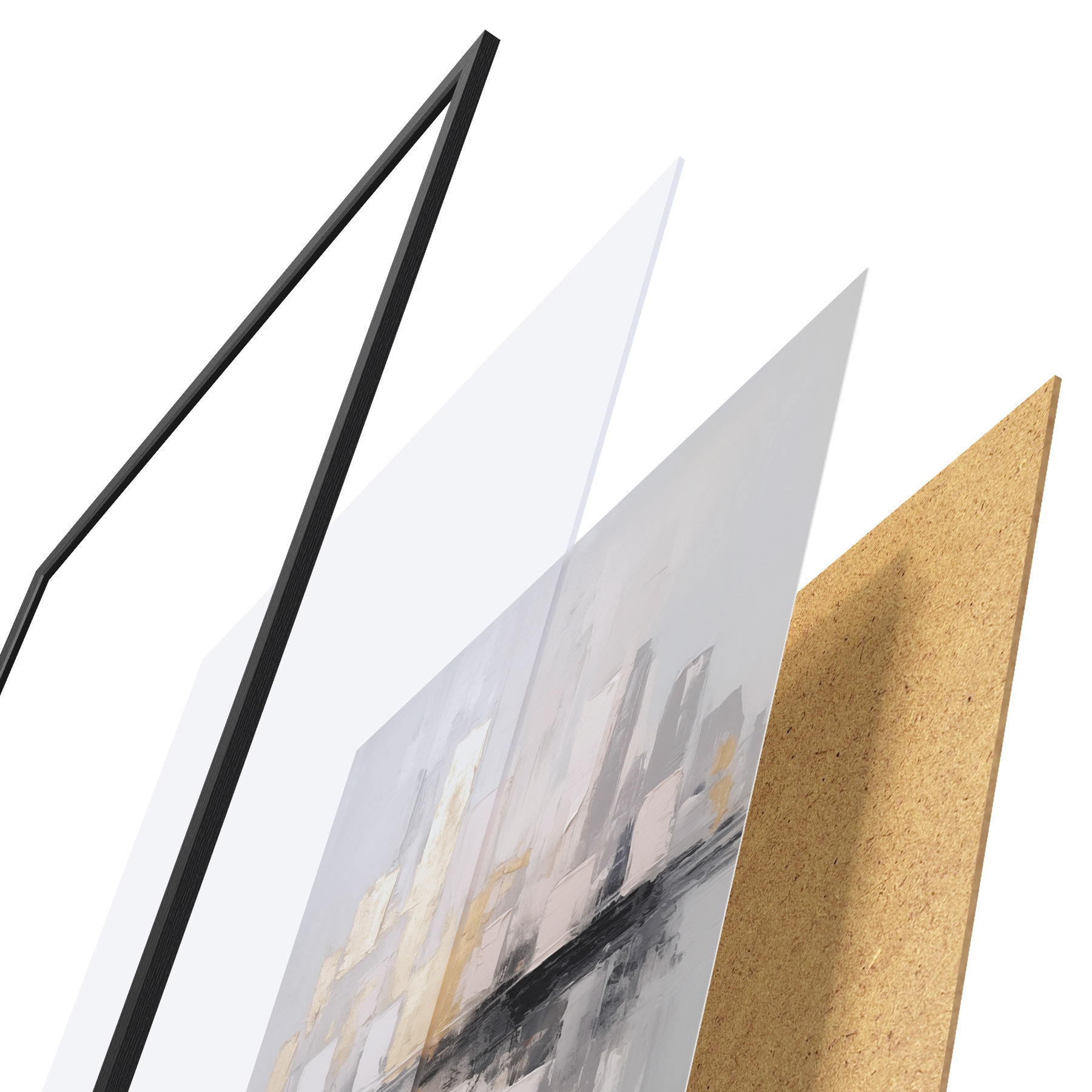 Plakāts sastāv no rāmja, pleksstikla, iespiestā attēla un skaidu plātnes pamatnes. Plakātu var uzreiz piekarināt pie sienas, pateicoties aizmugurē esošajiem stiprinājumiem.