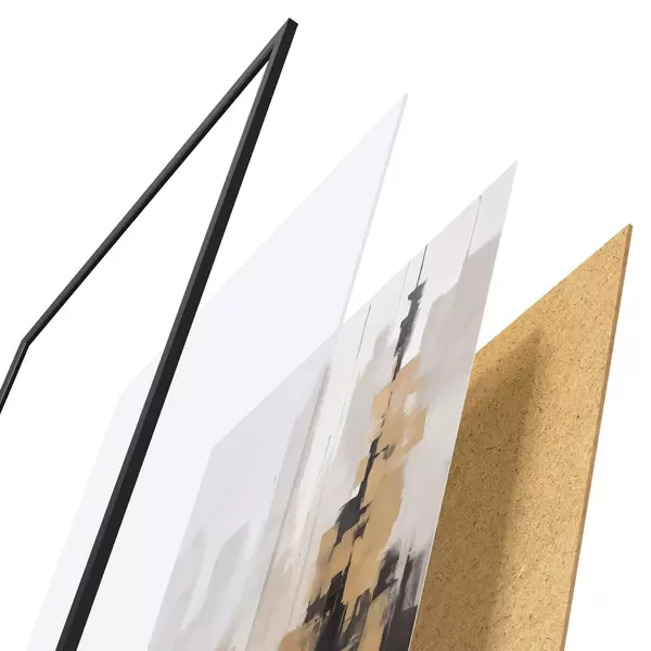 Plakāts sastāv no rāmja, pleksstikla, iespiestā attēla un skaidu plātnes pamatnes. Plakātu var uzreiz piekarināt pie sienas, pateicoties aizmugurē esošajiem stiprinājumiem.