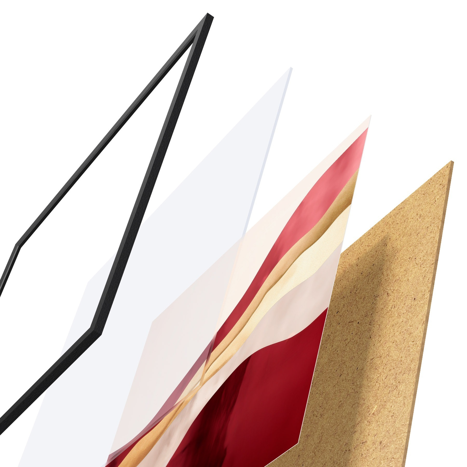 Plakāts sastāv no rāmja, pleksstikla, iespiestā attēla un skaidu plātnes pamatnes. Plakātu var uzreiz piekarināt pie sienas, pateicoties aizmugurē esošajiem stiprinājumiem.