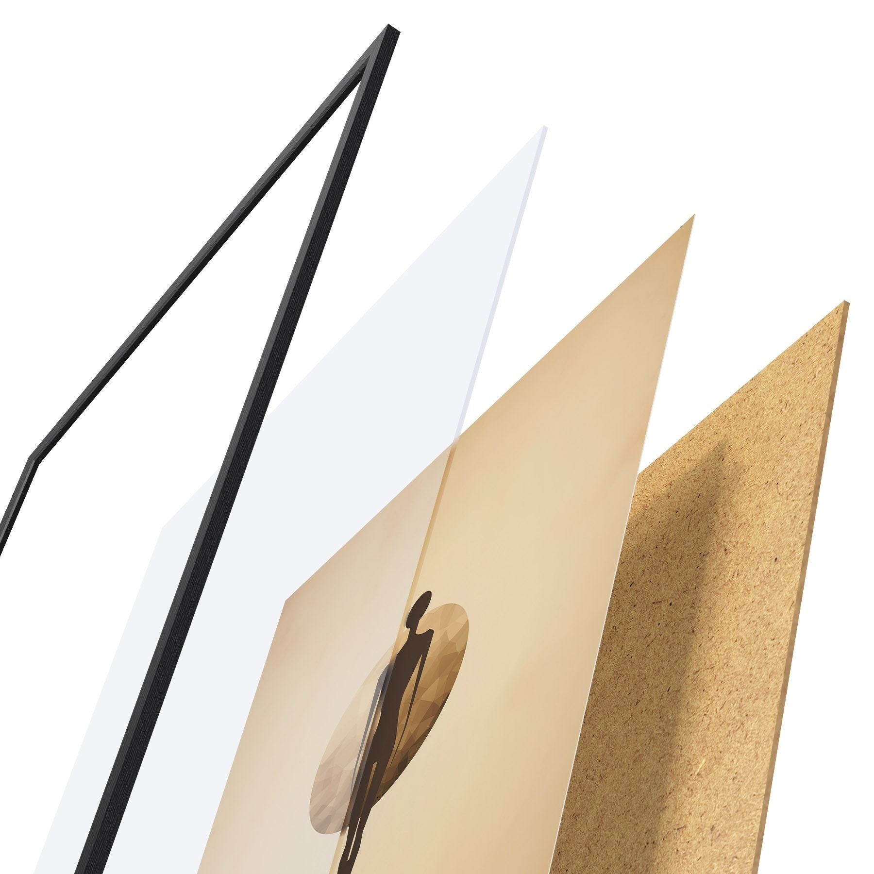 Plakāts sastāv no rāmja, pleksstikla, iespiestā attēla un skaidu plātnes pamatnes. Plakātu var uzreiz piekarināt pie sienas, pateicoties aizmugurē esošajiem stiprinājumiem.