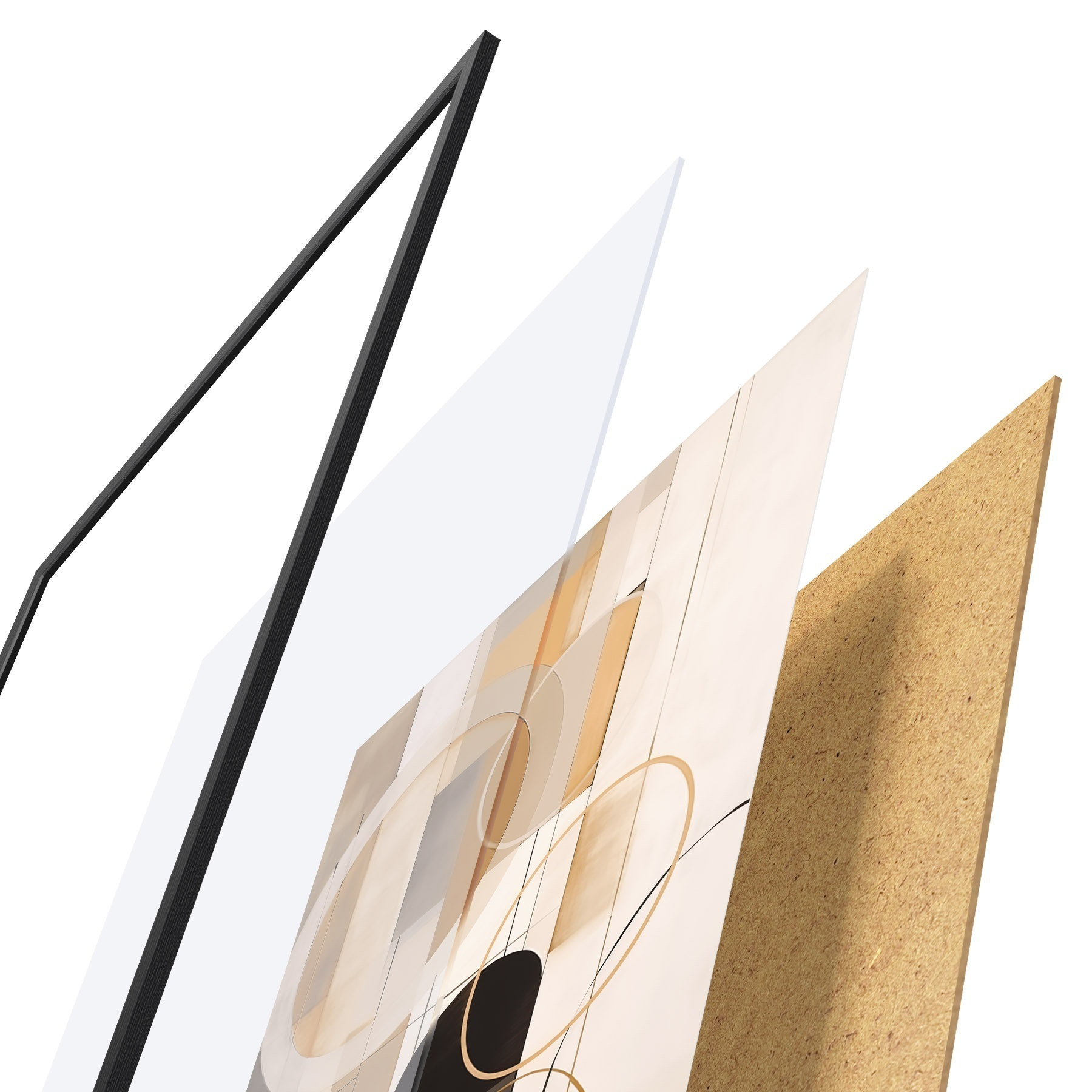 Plakāts sastāv no rāmja, pleksstikla, iespiestā attēla un skaidu plātnes pamatnes. Plakātu var uzreiz piekarināt pie sienas, pateicoties aizmugurē esošajiem stiprinājumiem.