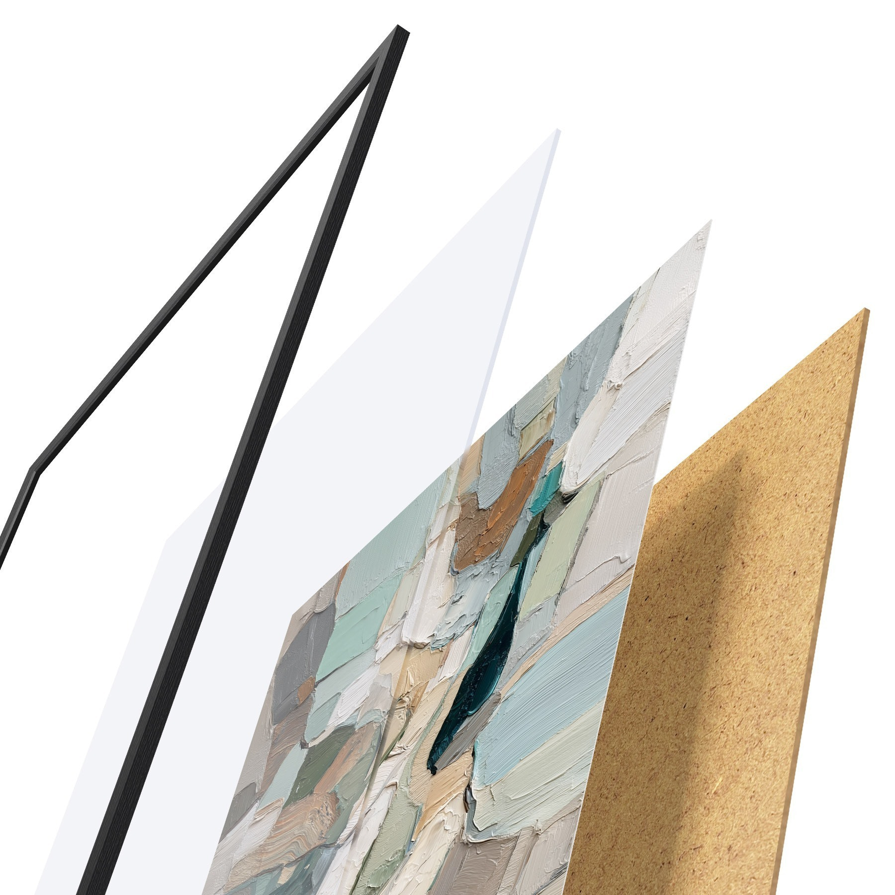 Plakāts sastāv no rāmja, pleksstikla, iespiestā attēla un skaidu plātnes pamatnes. Plakātu var uzreiz piekarināt pie sienas, pateicoties aizmugurē esošajiem stiprinājumiem.