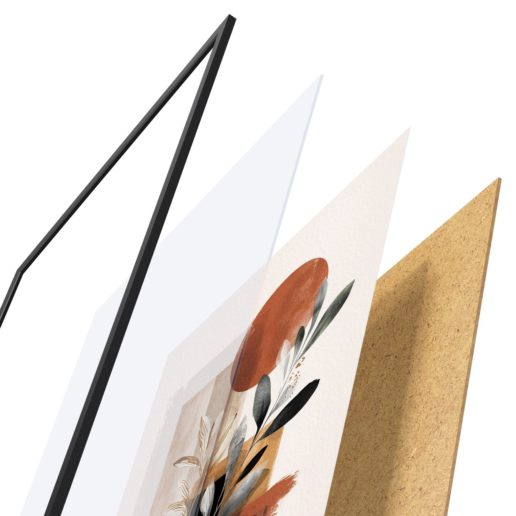 Plakāts sastāv no rāmja, pleksstikla, iespiestā attēla un skaidu plātnes pamatnes. Plakātu var uzreiz piekarināt pie sienas, pateicoties aizmugurē esošajiem stiprinājumiem.