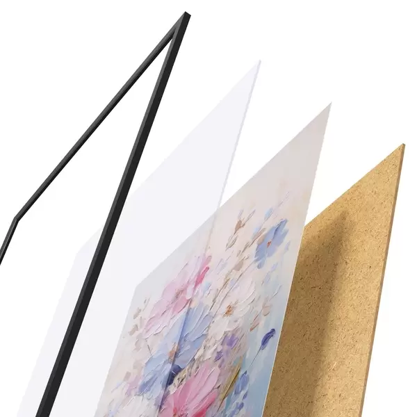 Plakāts sastāv no rāmja, pleksstikla, iespiestā attēla un skaidu plātnes pamatnes. Plakātu var uzreiz piekarināt pie sienas, pateicoties aizmugurē esošajiem stiprinājumiem.