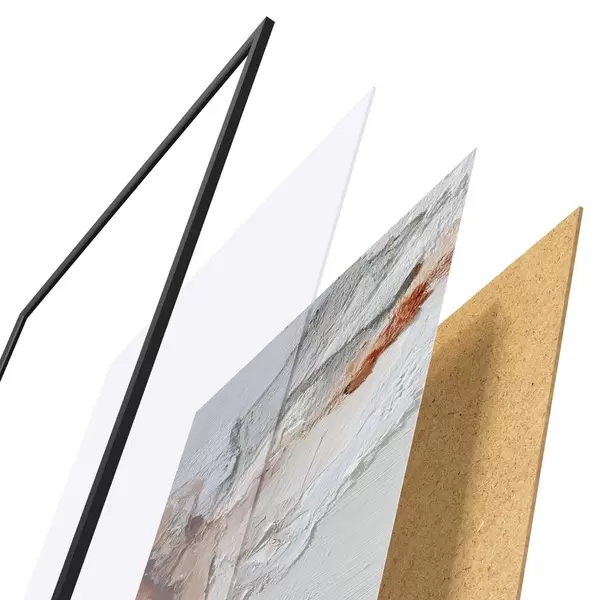 Plakāts sastāv no rāmja, pleksstikla, iespiestā attēla un skaidu plātnes pamatnes. Plakātu var uzreiz piekarināt pie sienas, pateicoties aizmugurē esošajiem stiprinājumiem.