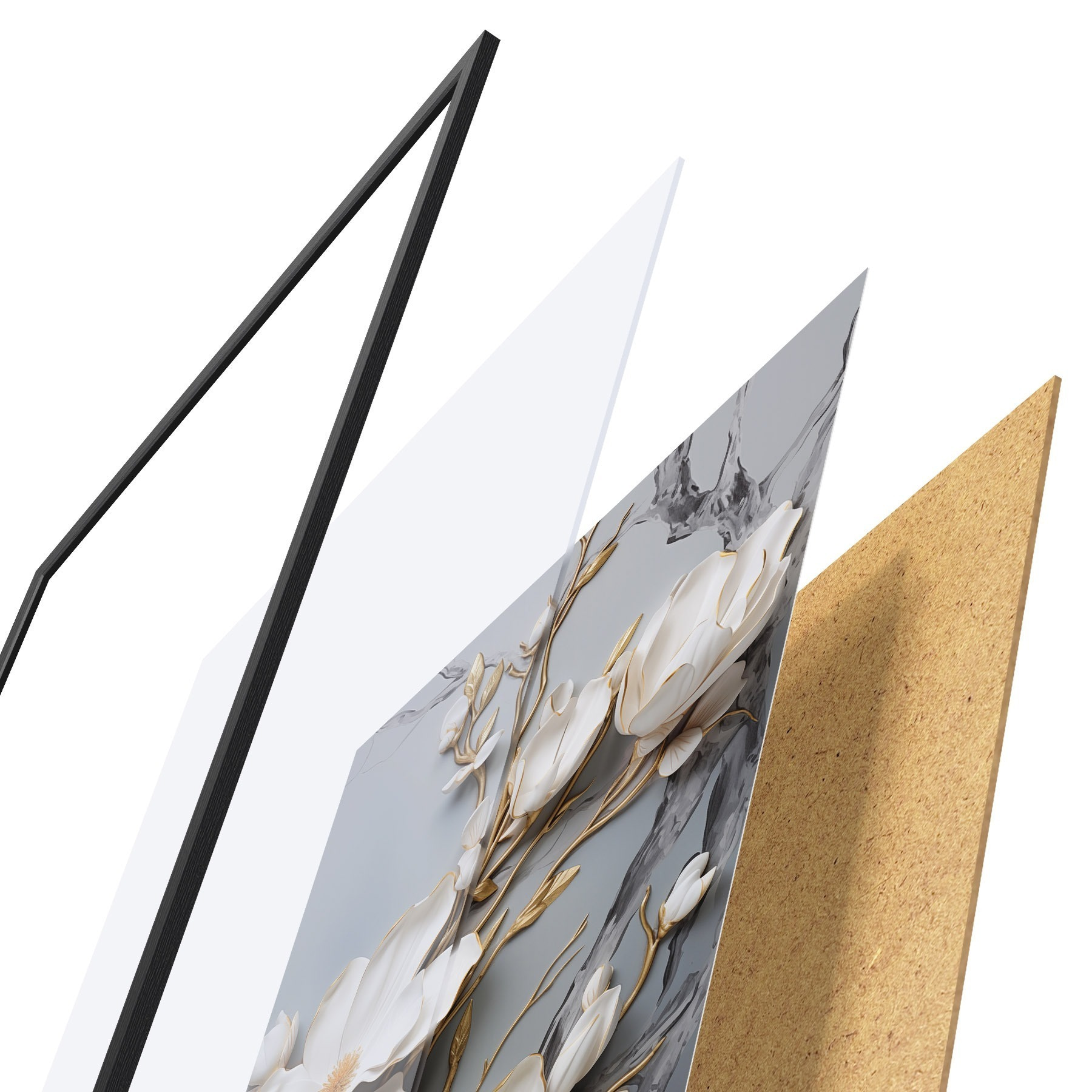 Plakāts sastāv no rāmja, pleksstikla, iespiestā attēla un skaidu plātnes pamatnes. Plakātu var uzreiz piekarināt pie sienas, pateicoties aizmugurē esošajiem stiprinājumiem.