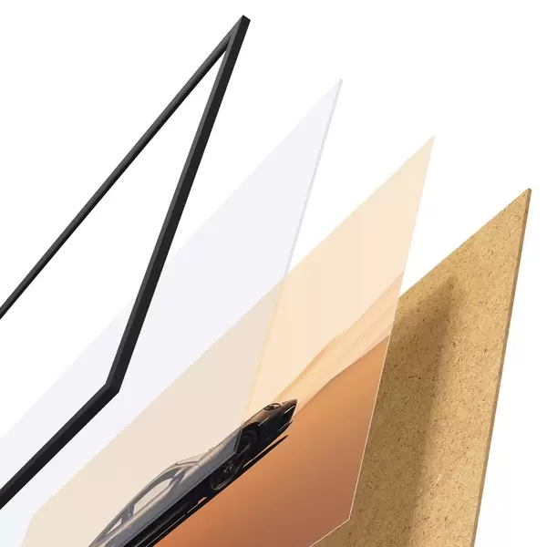 Plakāts sastāv no rāmja, pleksstikla, iespiestā attēla un skaidu plātnes pamatnes. Plakātu var uzreiz piekarināt pie sienas, pateicoties aizmugurē esošajiem stiprinājumiem.