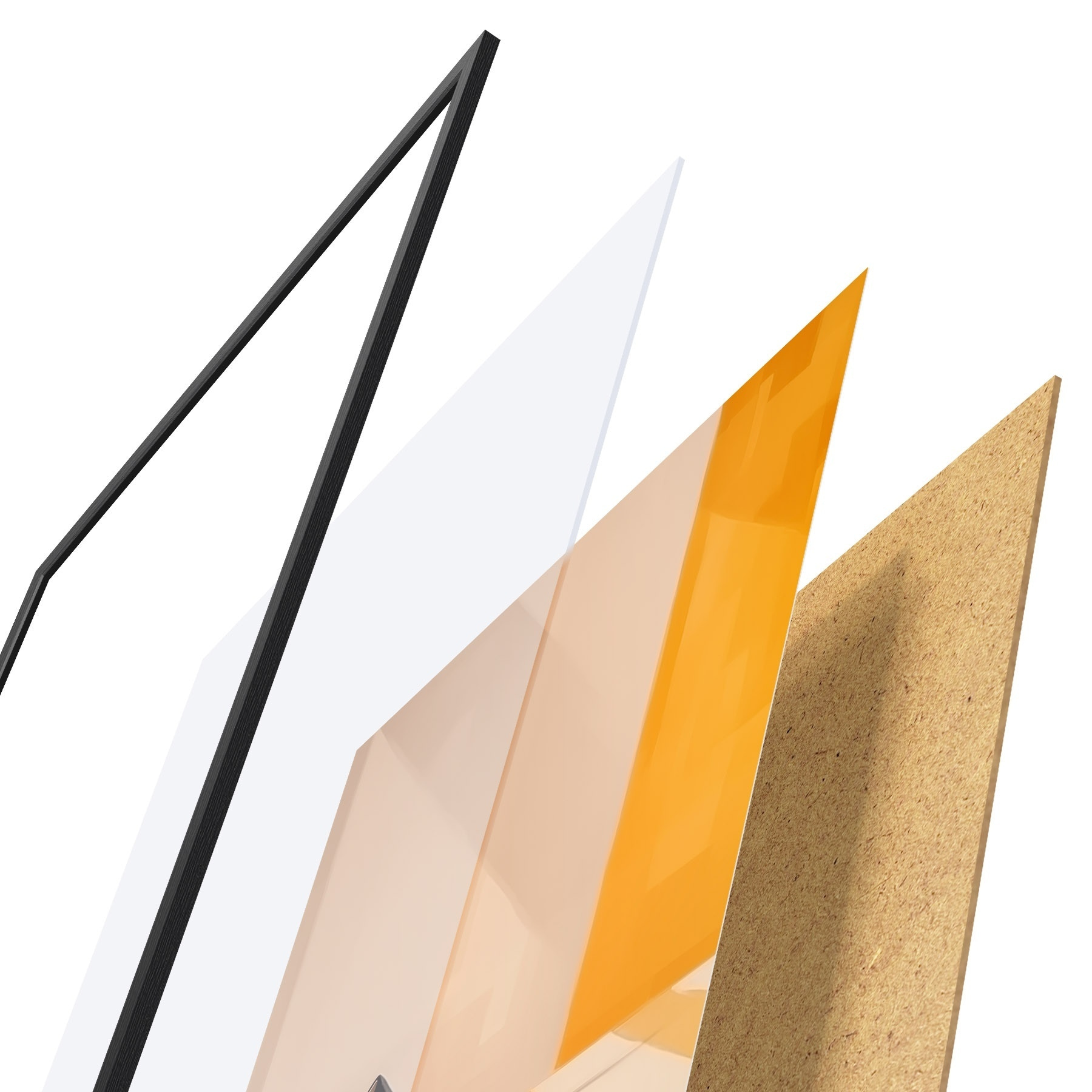Plakāts sastāv no rāmja, pleksstikla, iespiestā attēla un skaidu plātnes pamatnes. Plakātu var uzreiz piekarināt pie sienas, pateicoties aizmugurē esošajiem stiprinājumiem.