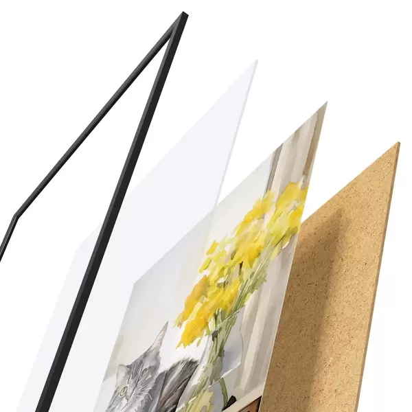 Plakāts sastāv no rāmja, pleksstikla, iespiestā attēla un skaidu plātnes pamatnes. Plakātu var uzreiz piekarināt pie sienas, pateicoties aizmugurē esošajiem stiprinājumiem.