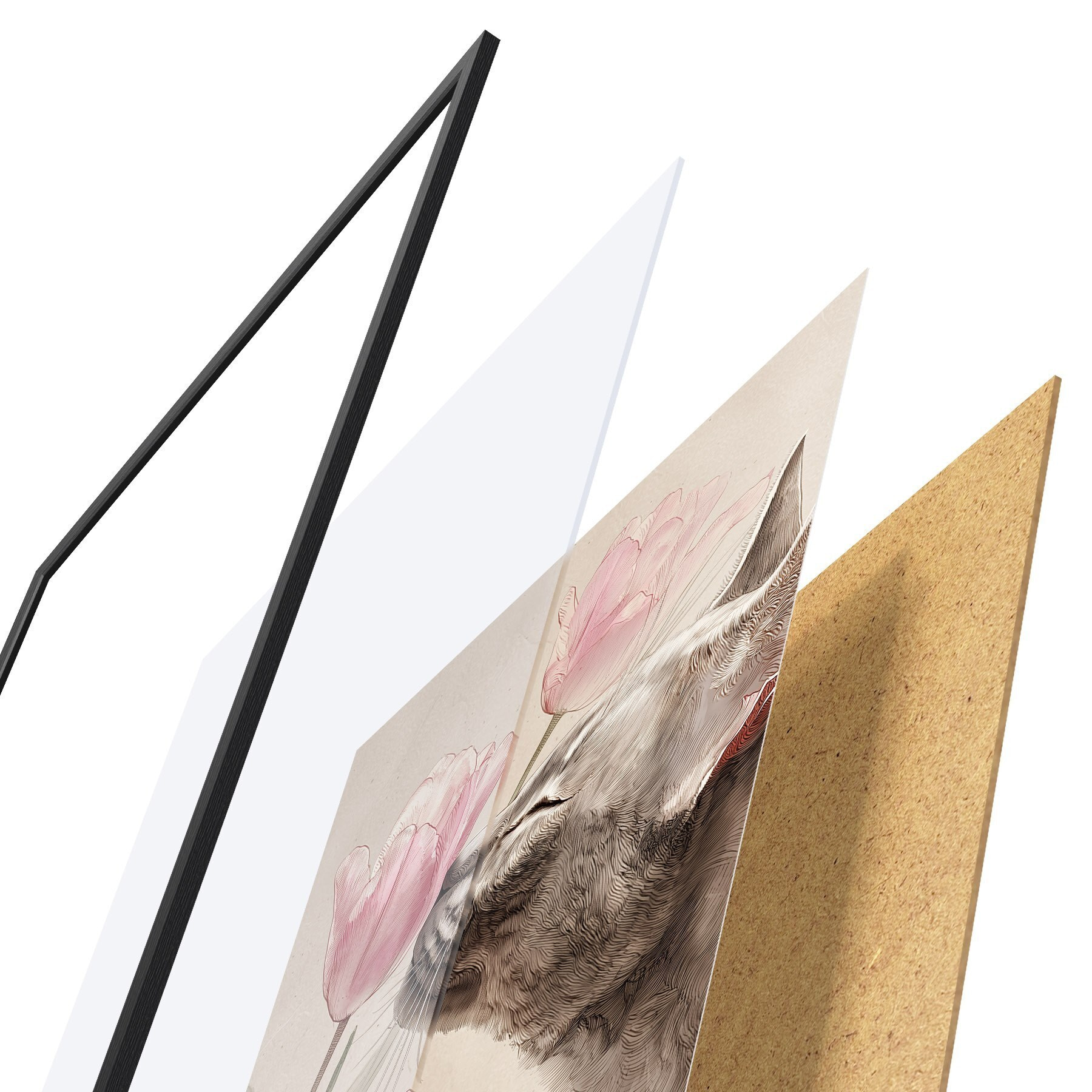 Plakāts sastāv no rāmja, pleksstikla, iespiestā attēla un skaidu plātnes pamatnes. Plakātu var uzreiz piekarināt pie sienas, pateicoties aizmugurē esošajiem stiprinājumiem.