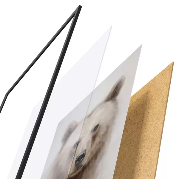 Plakāts sastāv no rāmja, pleksstikla, iespiestā attēla un skaidu plātnes pamatnes. Plakātu var uzreiz piekarināt pie sienas, pateicoties aizmugurē esošajiem stiprinājumiem.