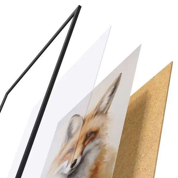 Plakāts sastāv no rāmja, pleksstikla, iespiestā attēla un skaidu plātnes pamatnes. Plakātu var uzreiz piekarināt pie sienas, pateicoties aizmugurē esošajiem stiprinājumiem.