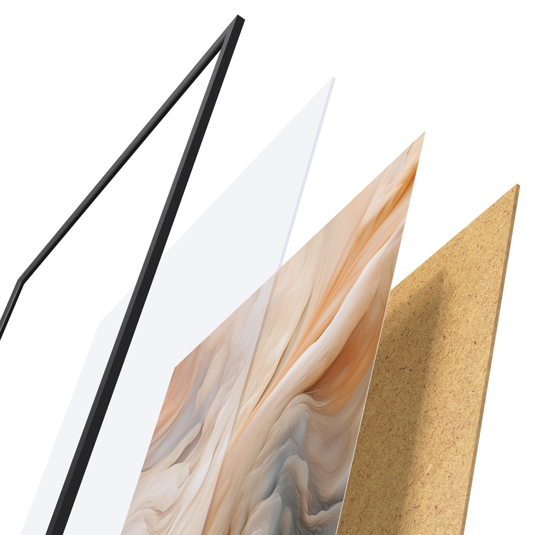 Plakāts sastāv no rāmja, pleksstikla, iespiestā attēla un skaidu plātnes pamatnes. Plakātu var uzreiz piekarināt pie sienas, pateicoties aizmugurē esošajiem stiprinājumiem.