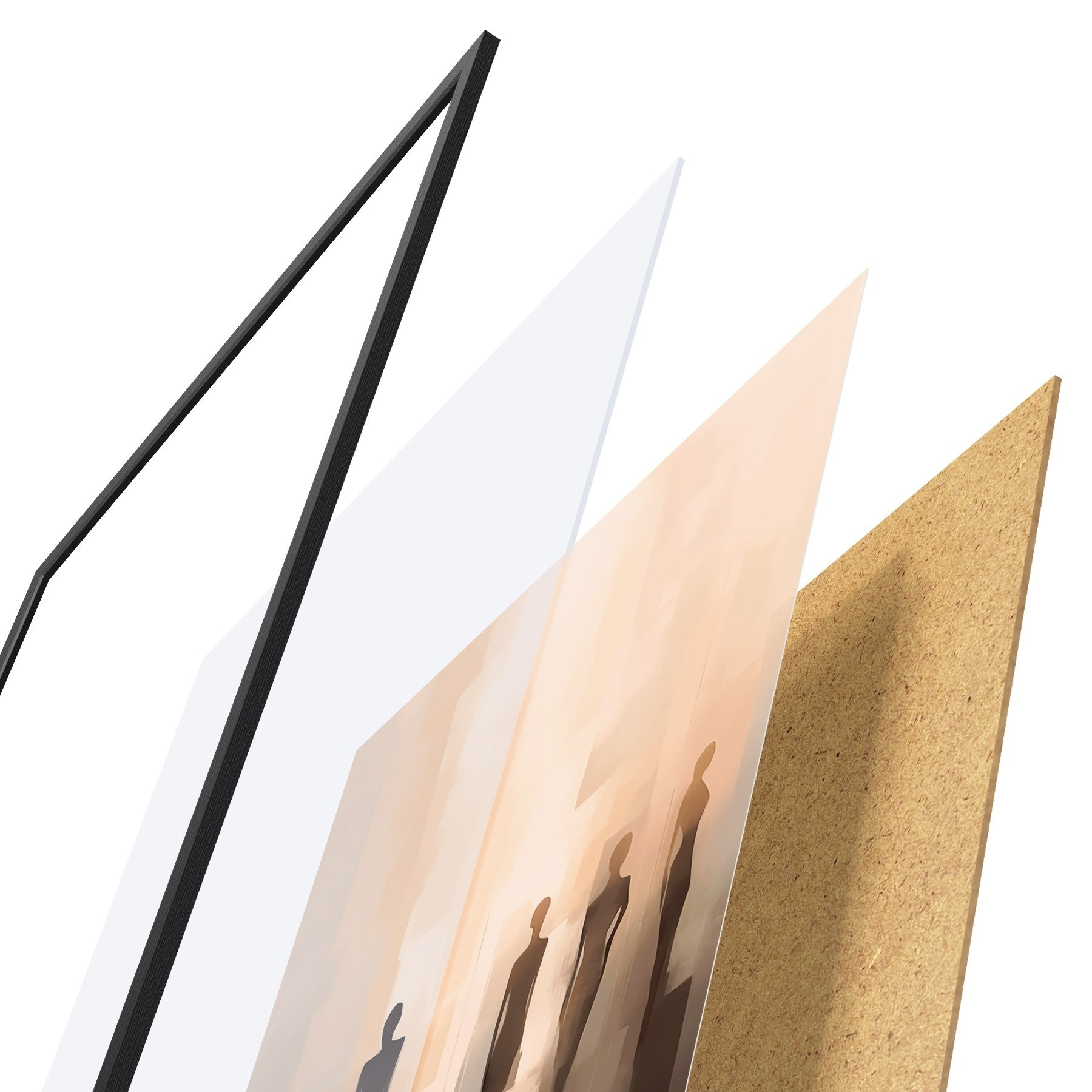 Plakāts sastāv no rāmja, pleksstikla, iespiestā attēla un skaidu plātnes pamatnes. Plakātu var uzreiz piekarināt pie sienas, pateicoties aizmugurē esošajiem stiprinājumiem.