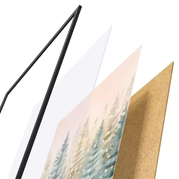 Plakāts sastāv no rāmja, pleksstikla, iespiestā attēla un skaidu plātnes pamatnes. Plakātu var uzreiz piekarināt pie sienas, pateicoties aizmugurē esošajiem stiprinājumiem.
