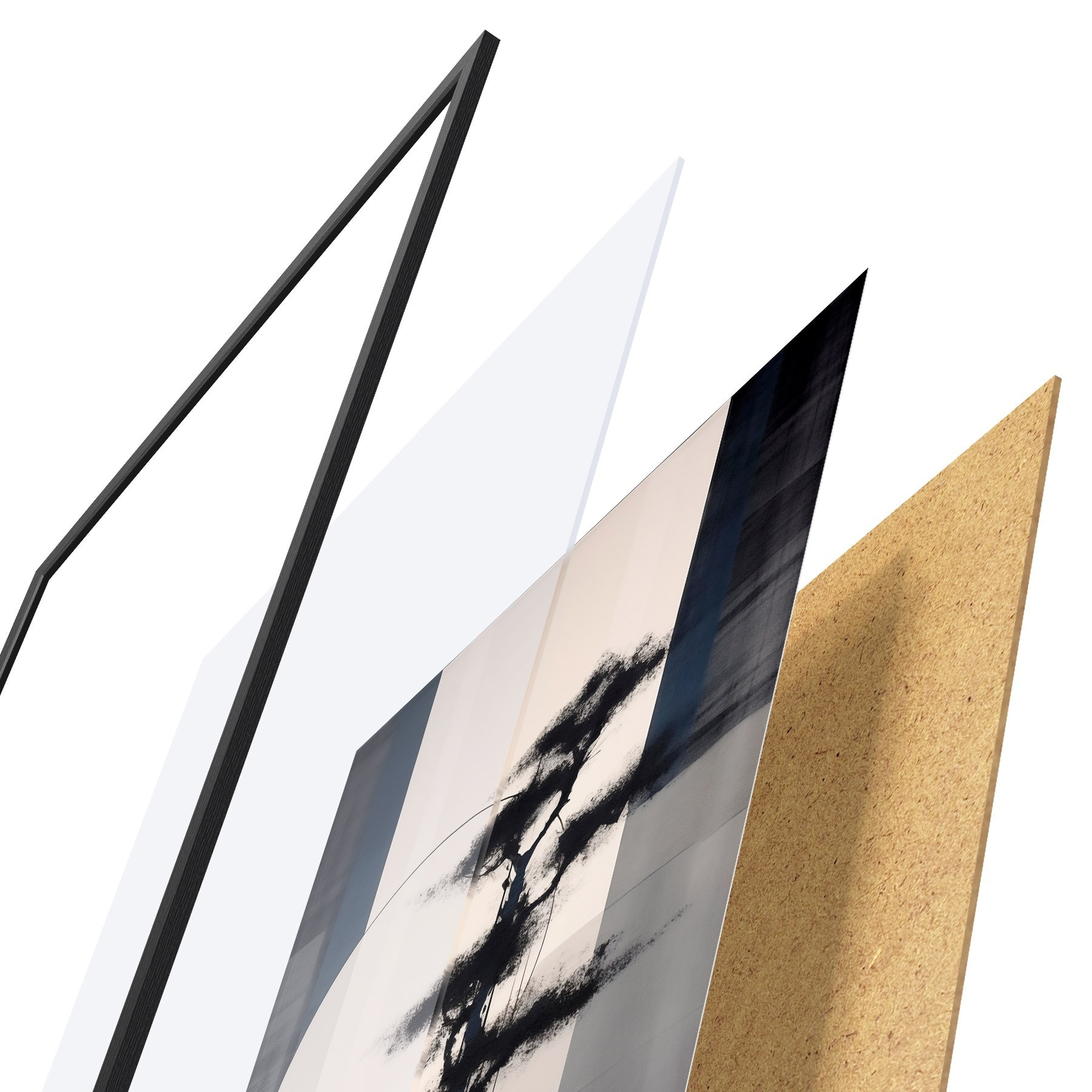 Plakāts sastāv no rāmja, pleksstikla, iespiestā attēla un skaidu plātnes pamatnes. Plakātu var uzreiz piekarināt pie sienas, pateicoties aizmugurē esošajiem stiprinājumiem.