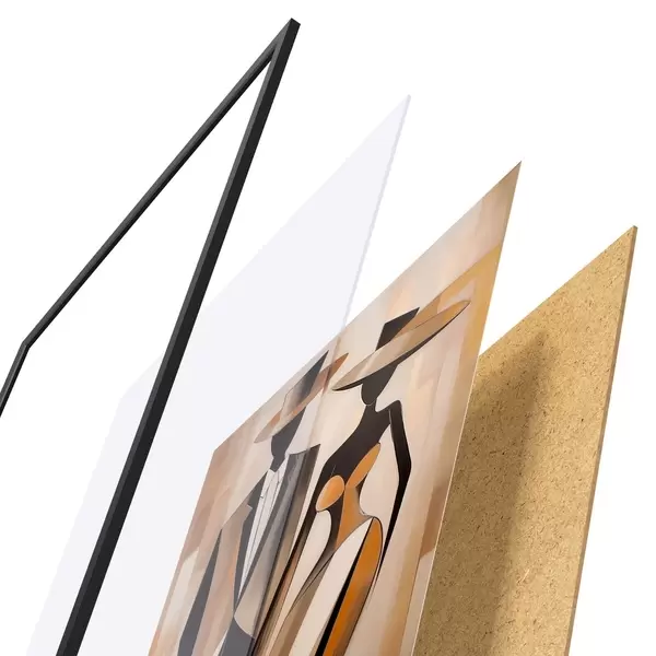 Plakāts sastāv no rāmja, pleksstikla, iespiestā attēla un skaidu plātnes pamatnes. Plakātu var uzreiz piekarināt pie sienas, pateicoties aizmugurē esošajiem stiprinājumiem.