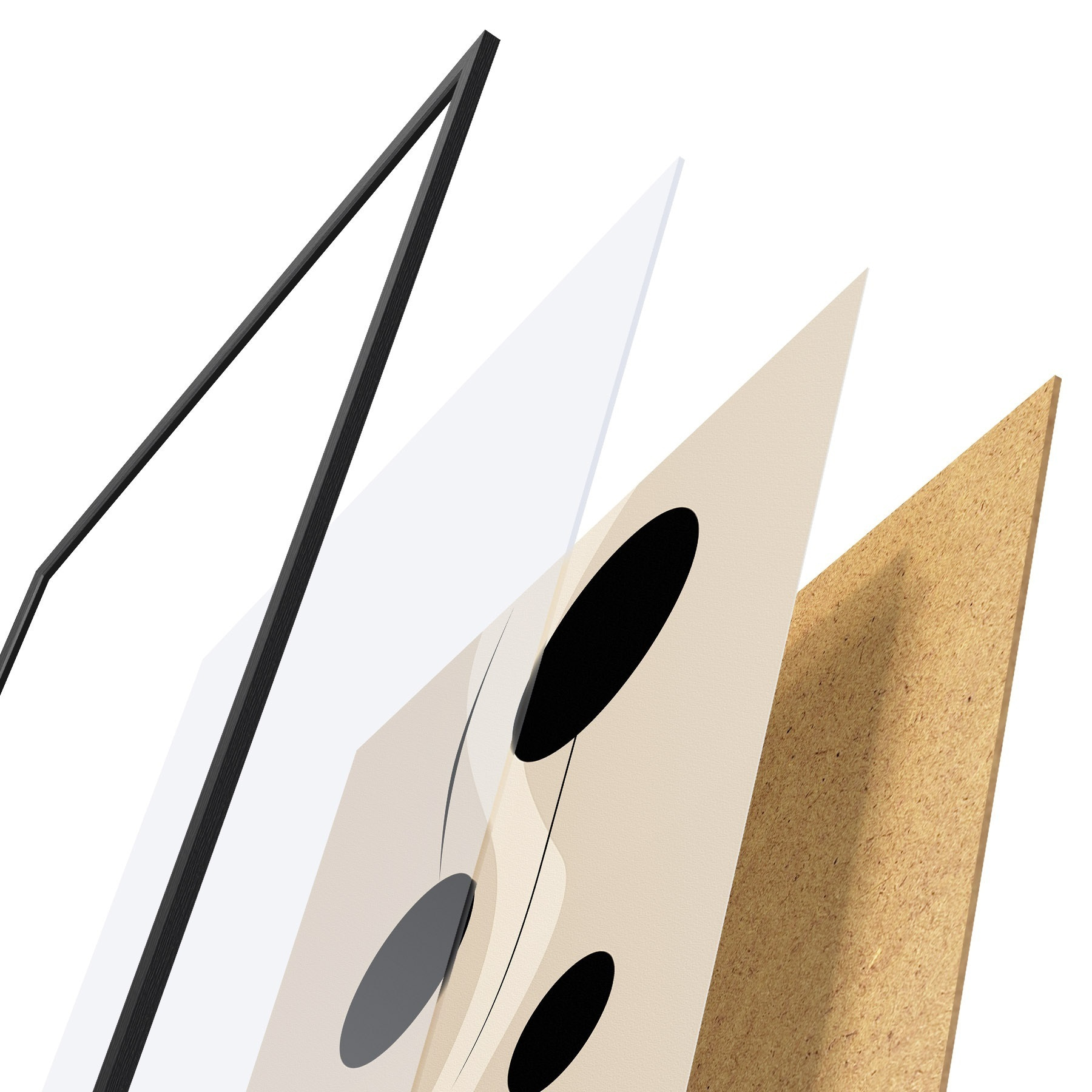Plakāts sastāv no rāmja, pleksstikla, iespiestā attēla un skaidu plātnes pamatnes. Plakātu var uzreiz piekarināt pie sienas, pateicoties aizmugurē esošajiem stiprinājumiem.