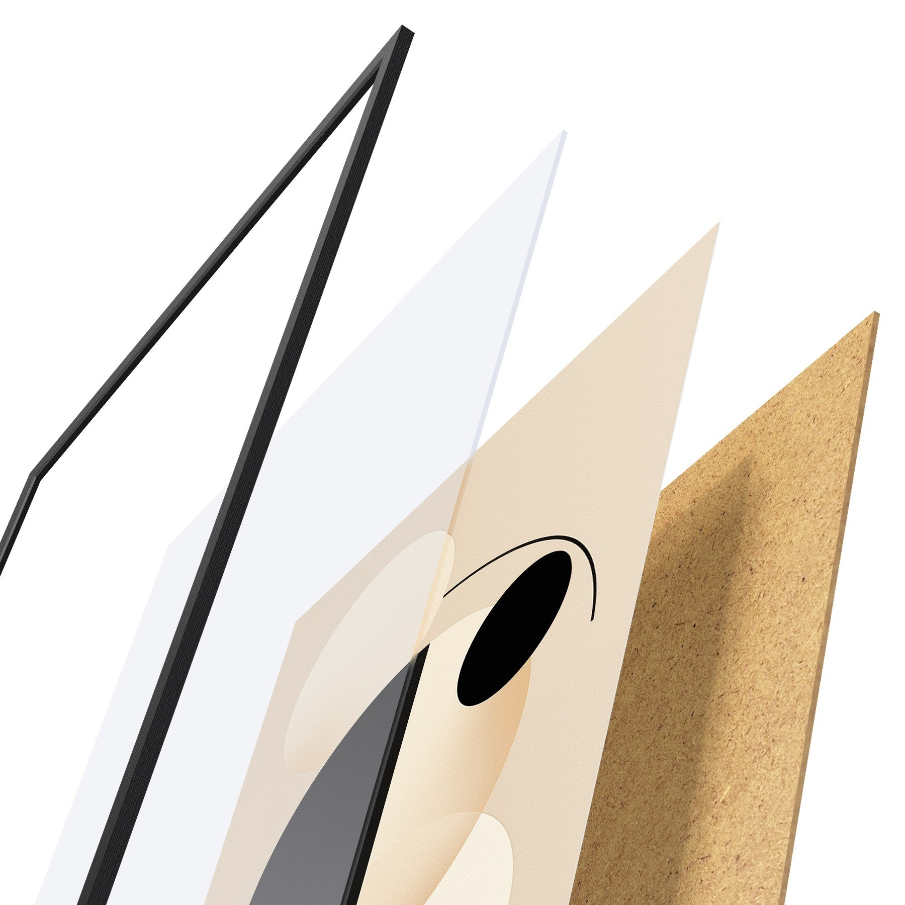 Plakāts sastāv no rāmja, pleksstikla, iespiestā attēla un skaidu plātnes pamatnes. Plakātu var uzreiz piekarināt pie sienas, pateicoties aizmugurē esošajiem stiprinājumiem.