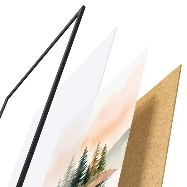 Plakāts sastāv no rāmja, pleksstikla, iespiestā attēla un skaidu plātnes pamatnes. Plakātu var uzreiz piekarināt pie sienas, pateicoties aizmugurē esošajiem stiprinājumiem.
