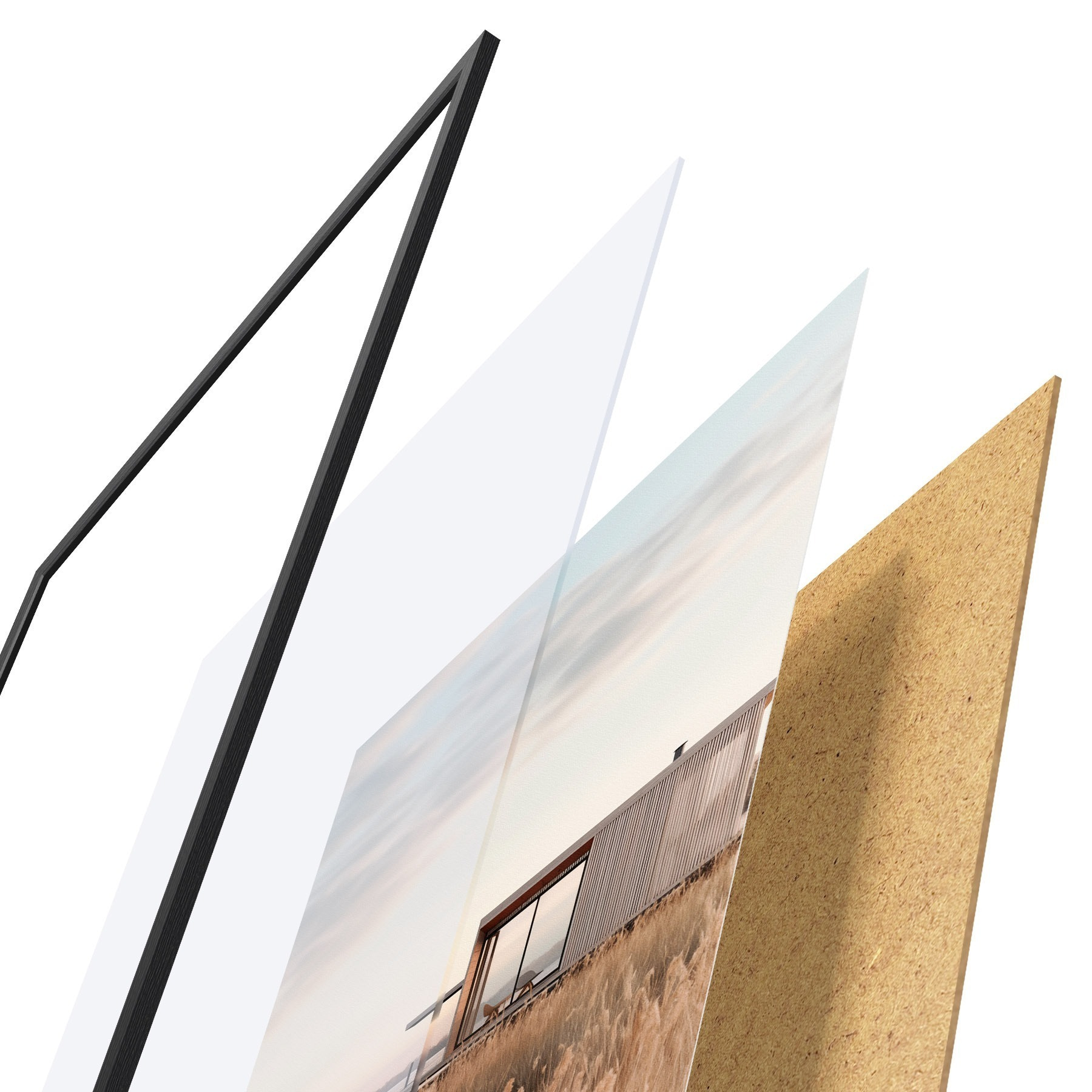 Plakāts sastāv no rāmja, pleksstikla, iespiestā attēla un skaidu plātnes pamatnes. Plakātu var uzreiz piekarināt pie sienas, pateicoties aizmugurē esošajiem stiprinājumiem.