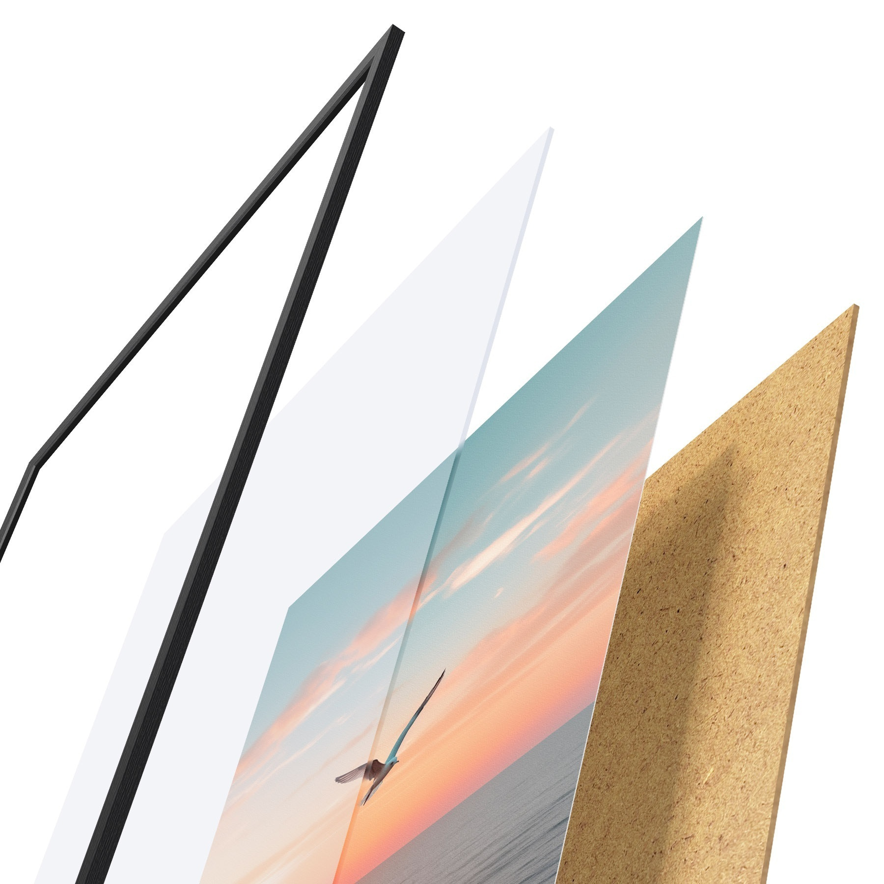 Plakāts sastāv no rāmja, pleksstikla, iespiestā attēla un skaidu plātnes pamatnes. Plakātu var uzreiz piekarināt pie sienas, pateicoties aizmugurē esošajiem stiprinājumiem.
