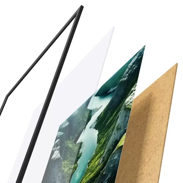 Plakāts sastāv no rāmja, pleksstikla, iespiestā attēla un skaidu plātnes pamatnes. Plakātu var uzreiz piekarināt pie sienas, pateicoties aizmugurē esošajiem stiprinājumiem.