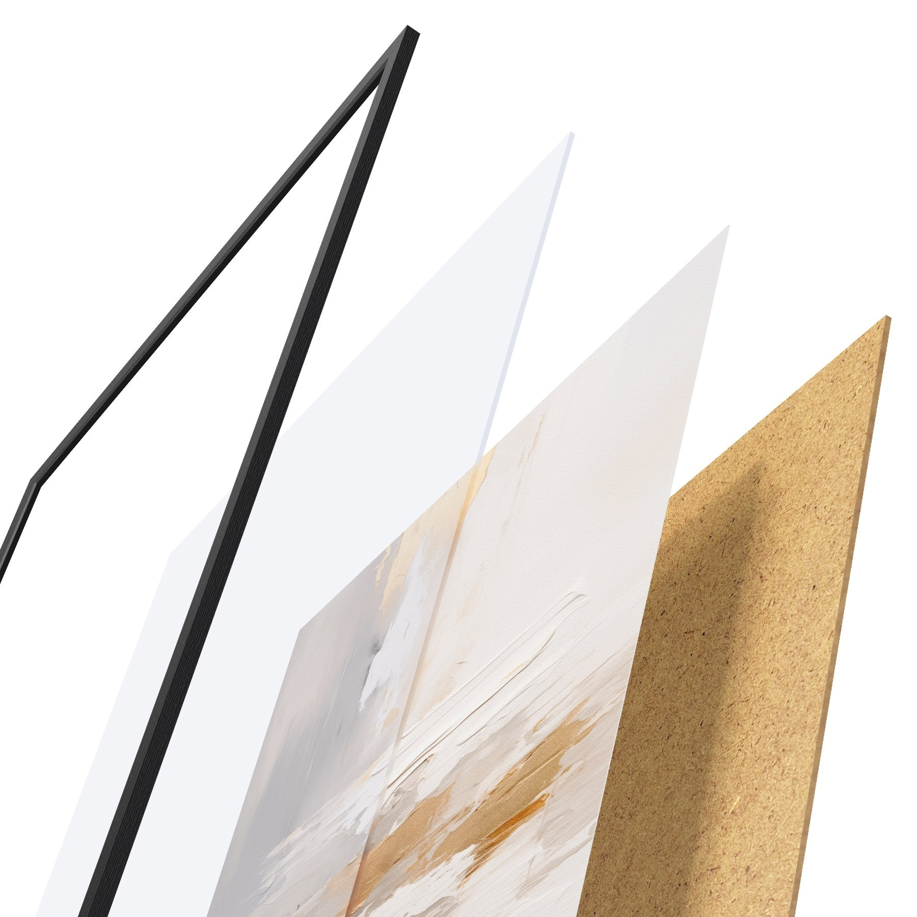 Plakāts sastāv no rāmja, pleksstikla, iespiestā attēla un skaidu plātnes pamatnes. Plakātu var uzreiz piekarināt pie sienas, pateicoties aizmugurē esošajiem stiprinājumiem.