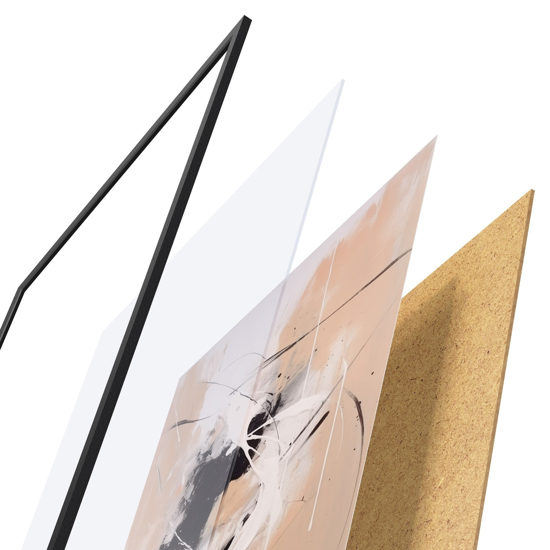 Plakāts sastāv no rāmja, pleksstikla, iespiestā attēla un skaidu plātnes pamatnes. Plakātu var uzreiz piekarināt pie sienas, pateicoties aizmugurē esošajiem stiprinājumiem.