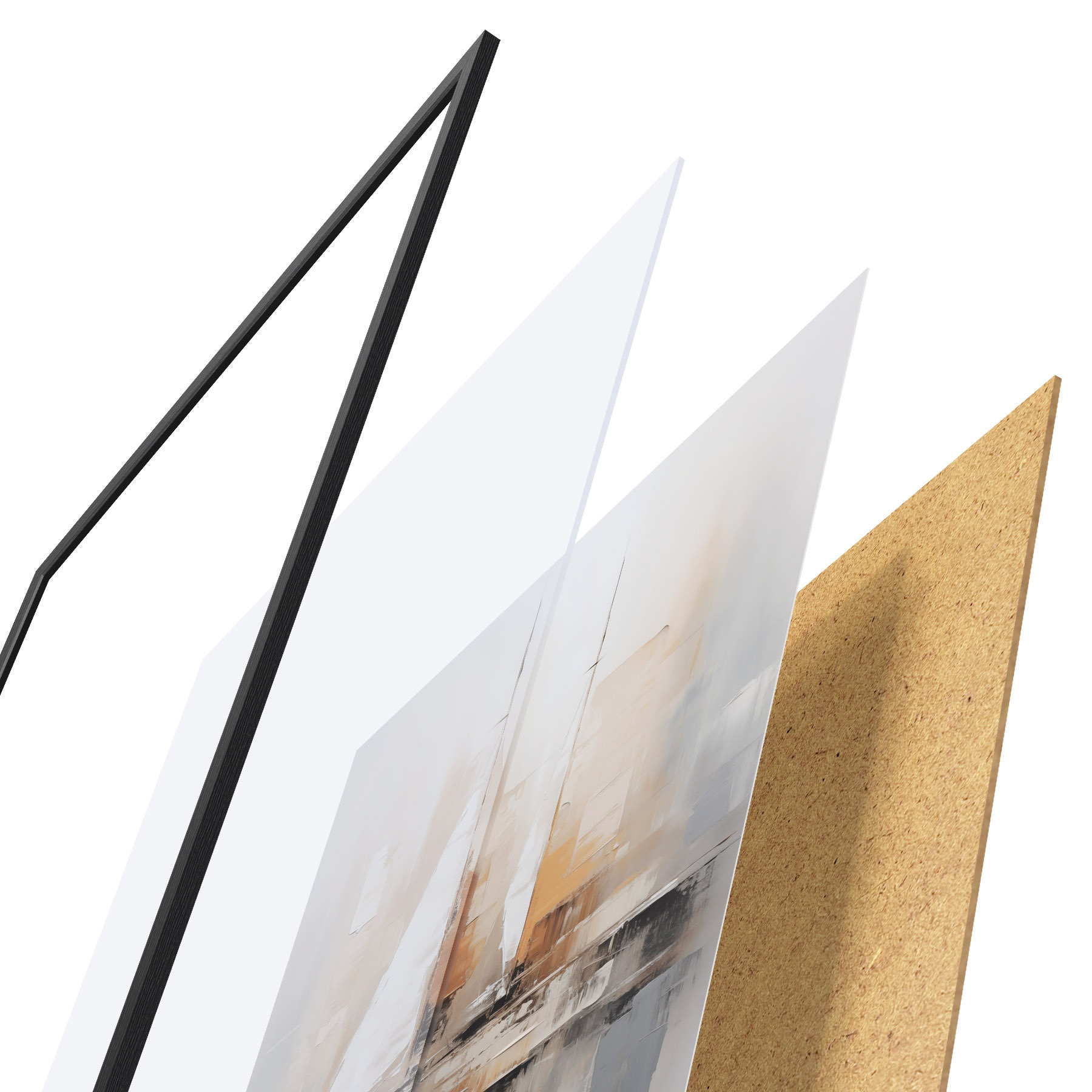 Plakāts sastāv no rāmja, pleksstikla, iespiestā attēla un skaidu plātnes pamatnes. Plakātu var uzreiz piekarināt pie sienas, pateicoties aizmugurē esošajiem stiprinājumiem.