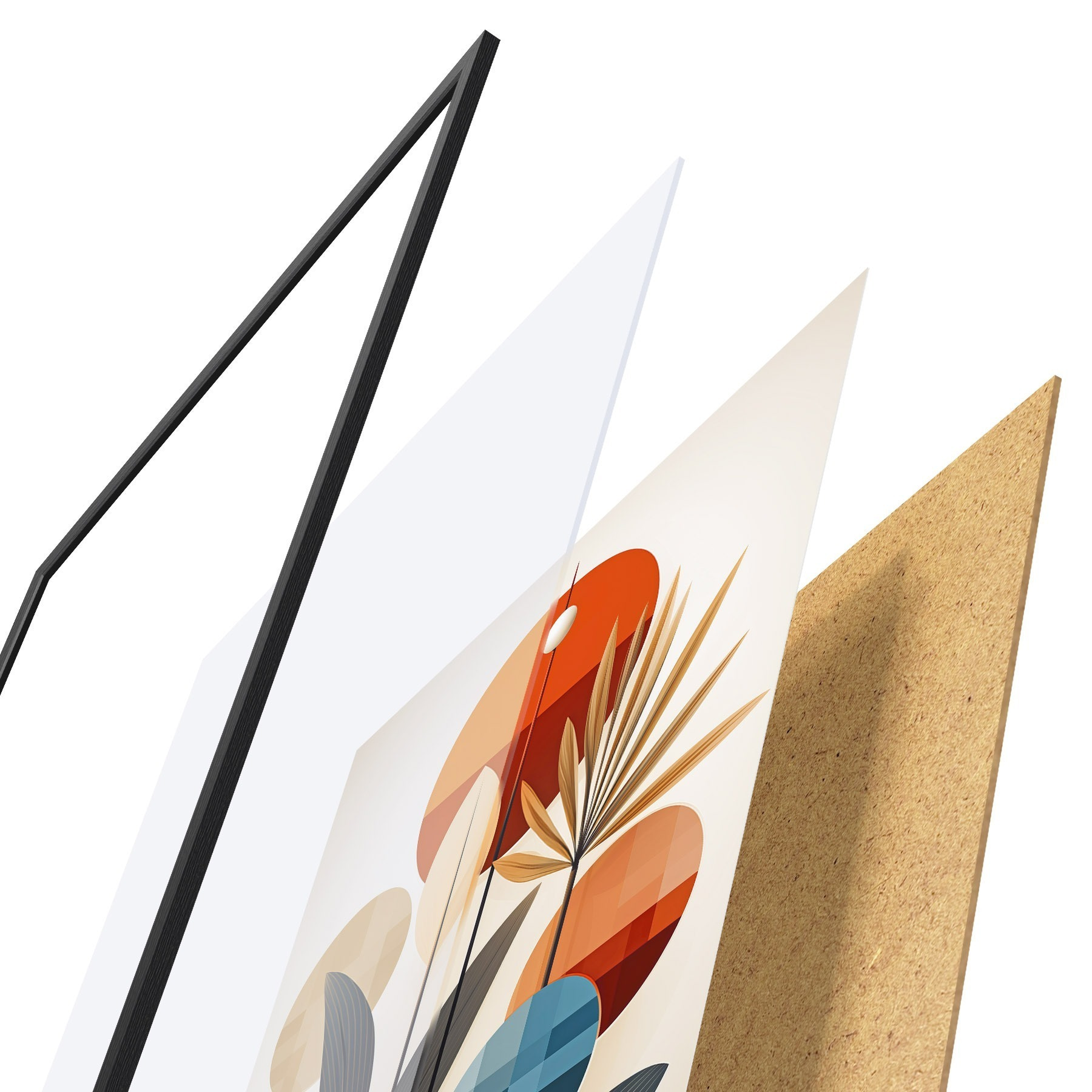 Plakāts sastāv no rāmja, pleksstikla, iespiestā attēla un skaidu plātnes pamatnes. Plakātu var uzreiz piekarināt pie sienas, pateicoties aizmugurē esošajiem stiprinājumiem.
