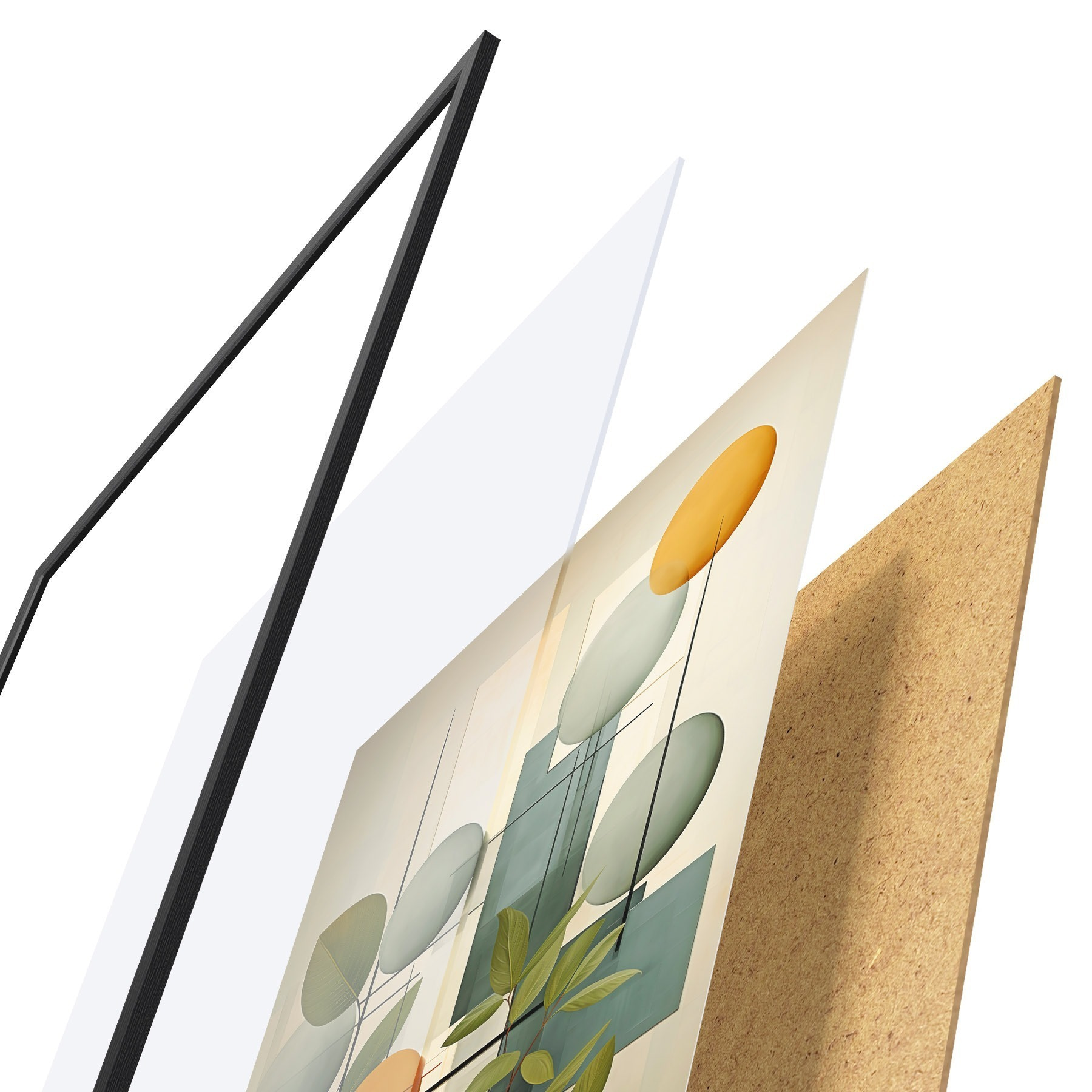 Plakāts sastāv no rāmja, pleksstikla, iespiestā attēla un skaidu plātnes pamatnes. Plakātu var uzreiz piekarināt pie sienas, pateicoties aizmugurē esošajiem stiprinājumiem.