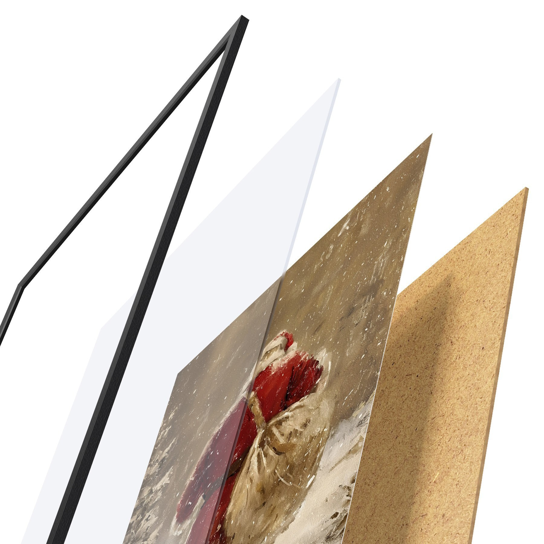 Plakāts sastāv no rāmja, pleksstikla, iespiestā attēla un skaidu plātnes pamatnes. Plakātu var uzreiz piekarināt pie sienas, pateicoties aizmugurē esošajiem stiprinājumiem.