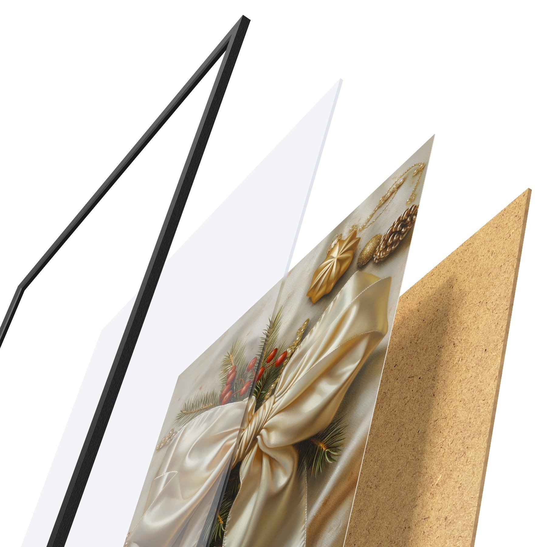 Plakāts sastāv no rāmja, pleksstikla, iespiestā attēla un skaidu plātnes pamatnes. Plakātu var uzreiz piekarināt pie sienas, pateicoties aizmugurē esošajiem stiprinājumiem.