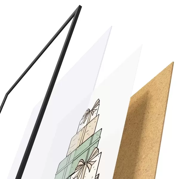 Plakāts sastāv no rāmja, pleksstikla, iespiestā attēla un skaidu plātnes pamatnes. Plakātu var uzreiz piekarināt pie sienas, pateicoties aizmugurē esošajiem stiprinājumiem.