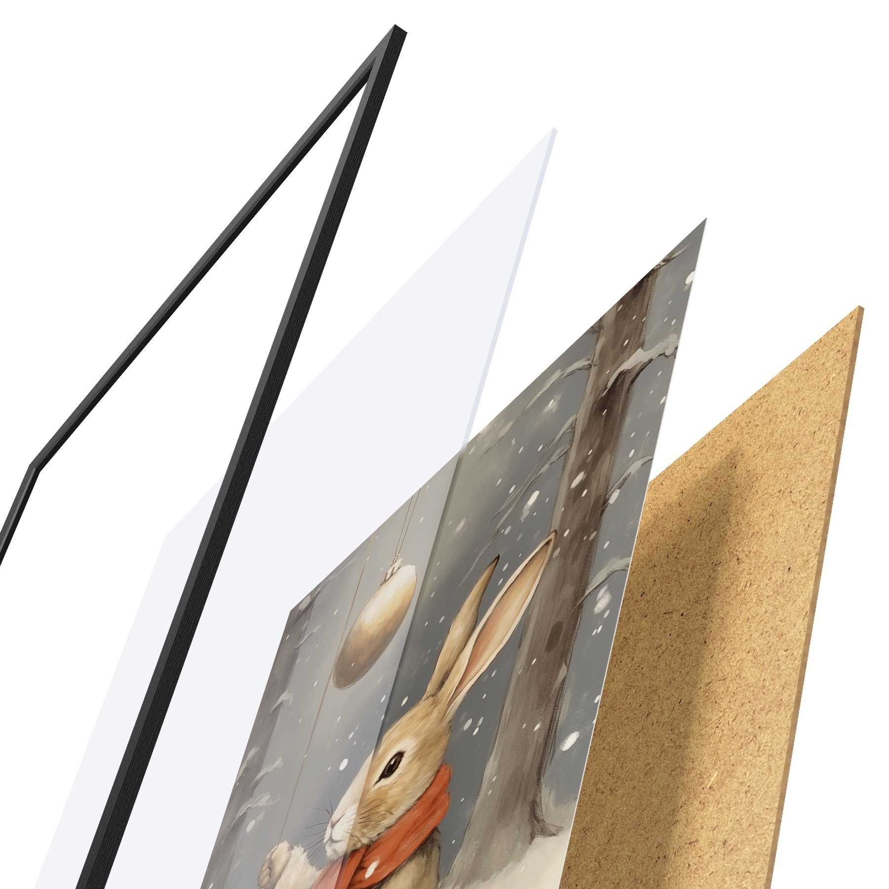 Plakāts sastāv no rāmja, pleksstikla, iespiestā attēla un skaidu plātnes pamatnes. Plakātu var uzreiz piekarināt pie sienas, pateicoties aizmugurē esošajiem stiprinājumiem.