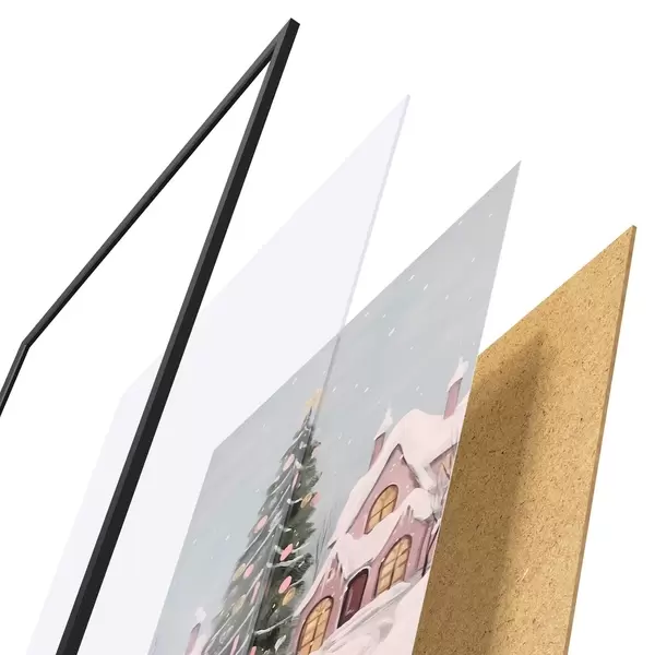 Plakāts sastāv no rāmja, pleksstikla, iespiestā attēla un skaidu plātnes pamatnes. Plakātu var uzreiz piekarināt pie sienas, pateicoties aizmugurē esošajiem stiprinājumiem.