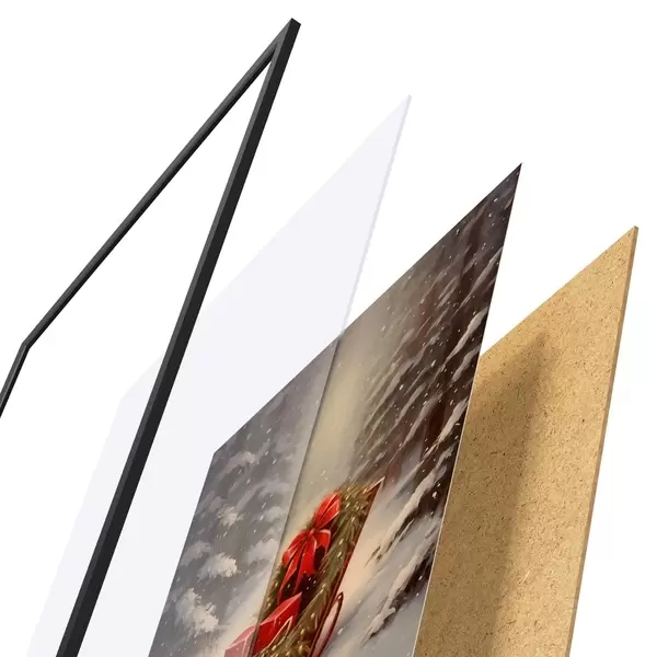 Plakāts sastāv no rāmja, pleksstikla, iespiestā attēla un skaidu plātnes pamatnes. Plakātu var uzreiz piekarināt pie sienas, pateicoties aizmugurē esošajiem stiprinājumiem.