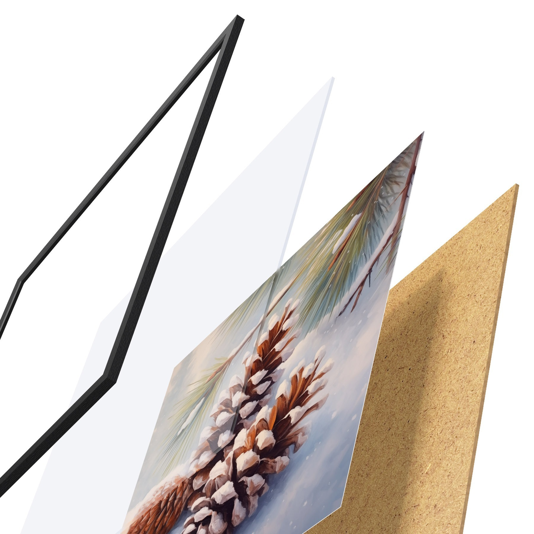 Plakāts sastāv no rāmja, pleksstikla, iespiestā attēla un skaidu plātnes pamatnes. Plakātu var uzreiz piekarināt pie sienas, pateicoties aizmugurē esošajiem stiprinājumiem.