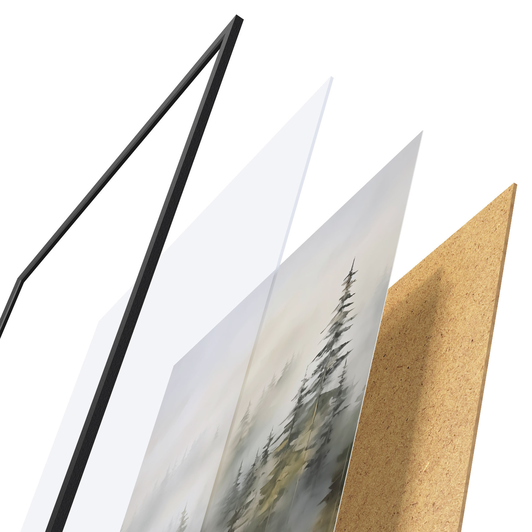 Plakāts sastāv no rāmja, pleksstikla, iespiestā attēla un skaidu plātnes pamatnes. Plakātu var uzreiz piekarināt pie sienas, pateicoties aizmugurē esošajiem stiprinājumiem.