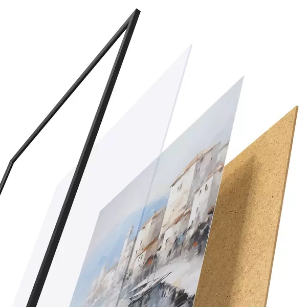 Plakāts sastāv no rāmja, pleksstikla, iespiestā attēla un skaidu plātnes pamatnes. Plakātu var uzreiz piekarināt pie sienas, pateicoties aizmugurē esošajiem stiprinājumiem.