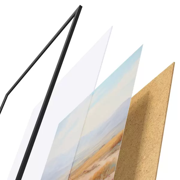 Plakāts sastāv no rāmja, pleksstikla, iespiestā attēla un skaidu plātnes pamatnes. Plakātu var uzreiz piekarināt pie sienas, pateicoties aizmugurē esošajiem stiprinājumiem.