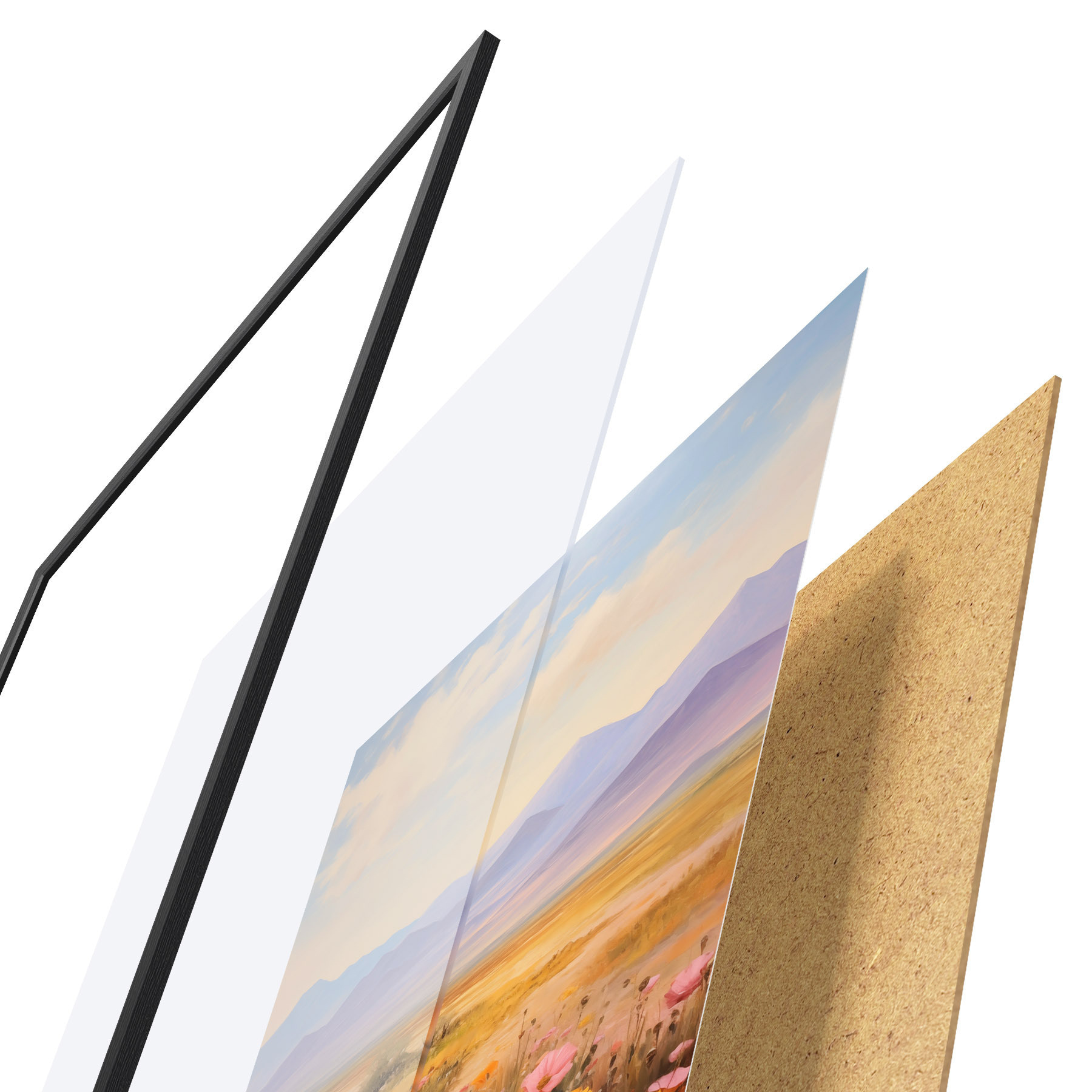 Plakāts sastāv no rāmja, pleksstikla, iespiestā attēla un skaidu plātnes pamatnes. Plakātu var uzreiz piekarināt pie sienas, pateicoties aizmugurē esošajiem stiprinājumiem.
