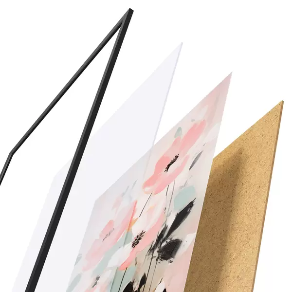 Plakāts sastāv no rāmja, pleksstikla, iespiestā attēla un skaidu plātnes pamatnes. Plakātu var uzreiz piekarināt pie sienas, pateicoties aizmugurē esošajiem stiprinājumiem.