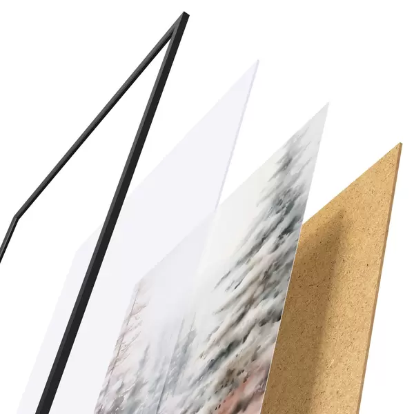 Plakāts sastāv no rāmja, pleksstikla, iespiestā attēla un skaidu plātnes pamatnes. Plakātu var uzreiz piekarināt pie sienas, pateicoties aizmugurē esošajiem stiprinājumiem.