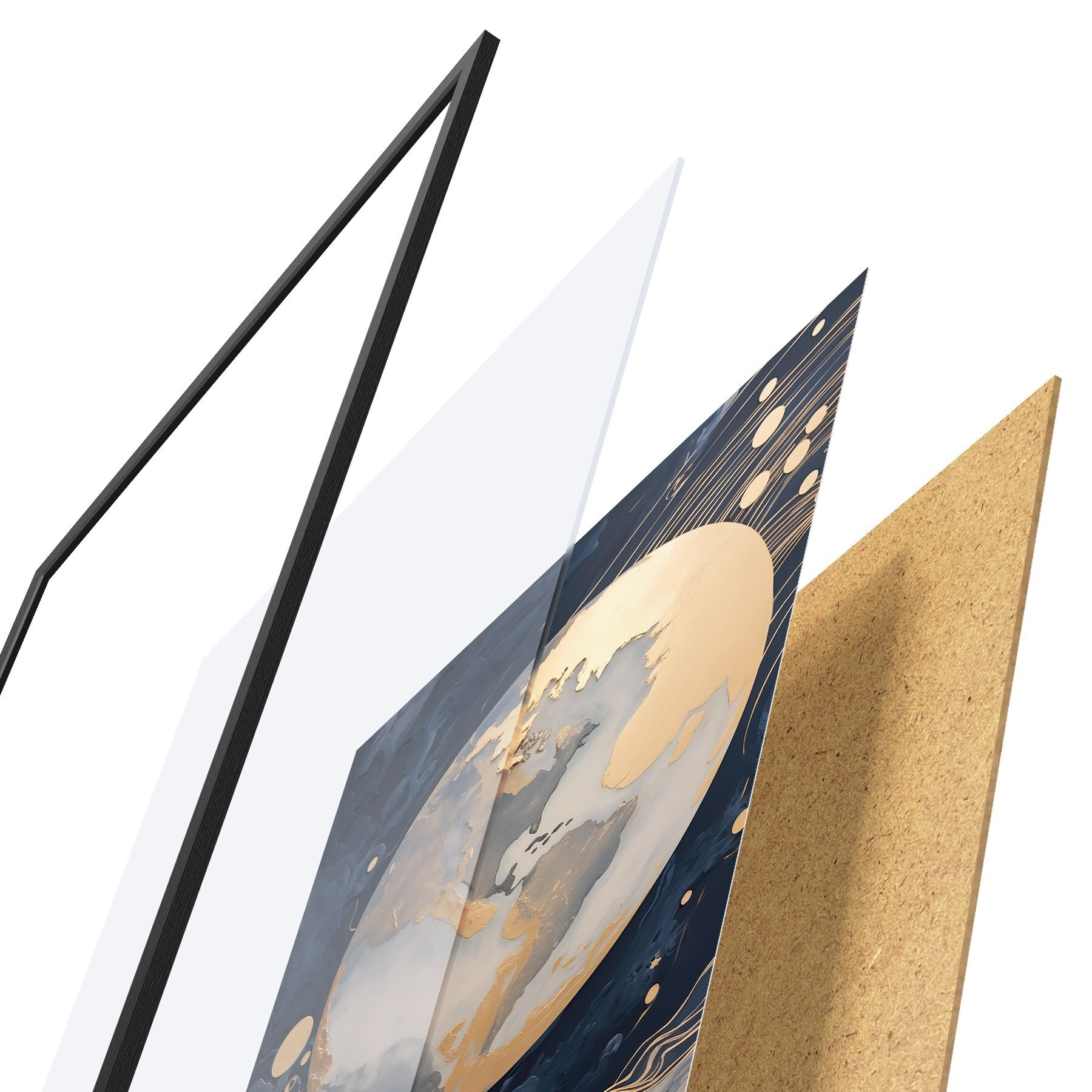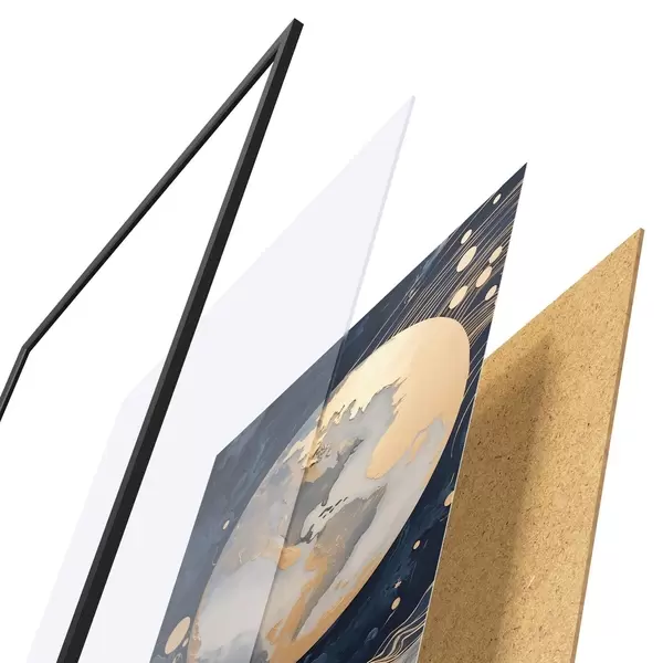 Plakāts sastāv no rāmja, pleksstikla, iespiestā attēla un skaidu plātnes pamatnes. Plakātu var uzreiz piekarināt pie sienas, pateicoties aizmugurē esošajiem stiprinājumiem.