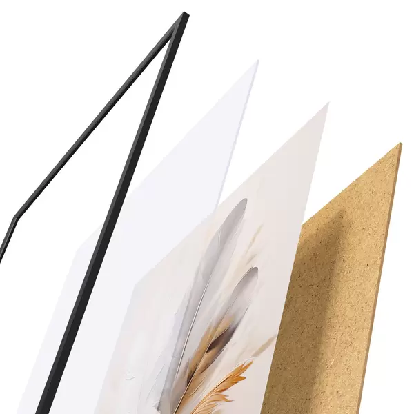 Plakāts sastāv no rāmja, pleksstikla, iespiestā attēla un skaidu plātnes pamatnes. Plakātu var uzreiz piekarināt pie sienas, pateicoties aizmugurē esošajiem stiprinājumiem.