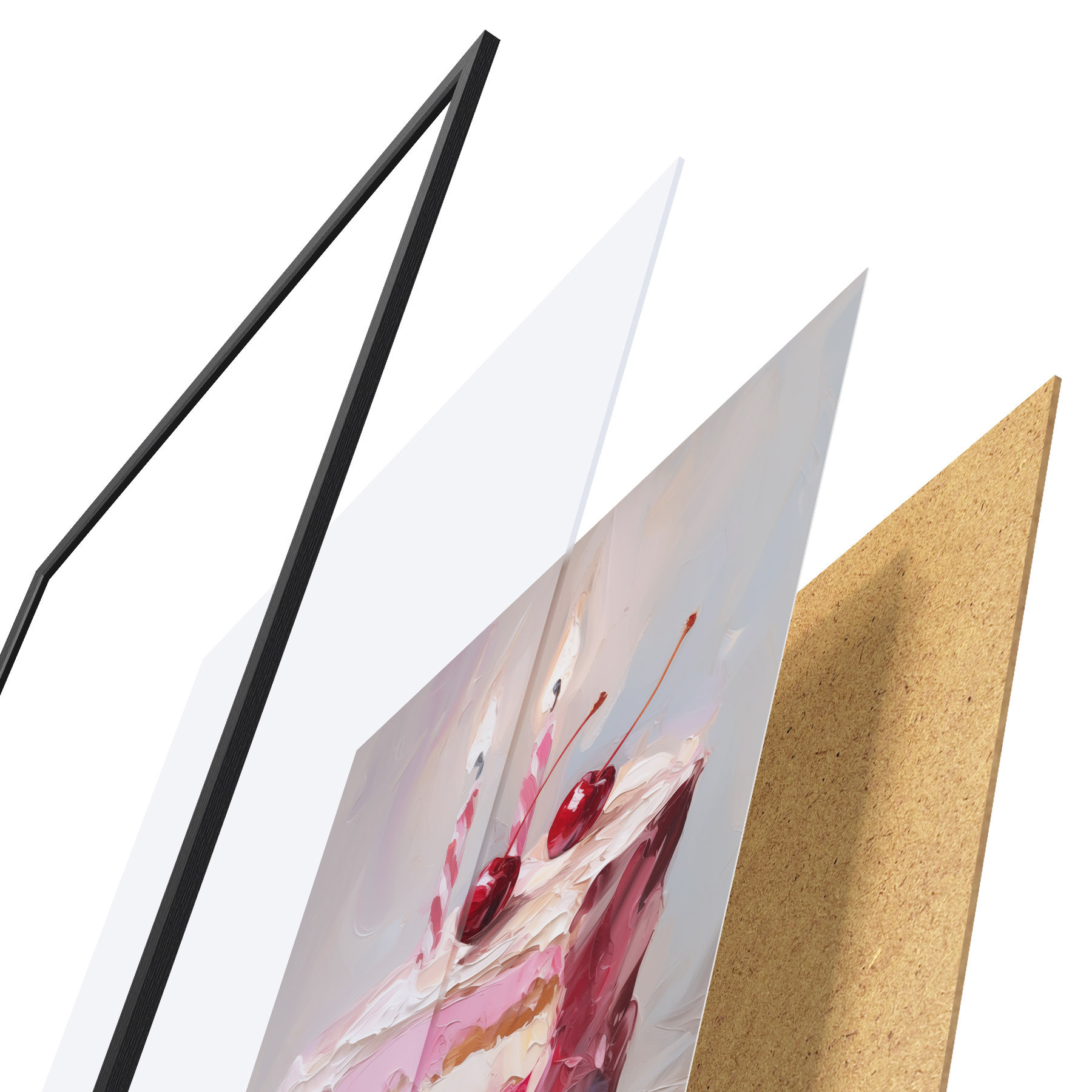 Plakāts sastāv no rāmja, pleksstikla, iespiestā attēla un skaidu plātnes pamatnes. Plakātu var uzreiz piekarināt pie sienas, pateicoties aizmugurē esošajiem stiprinājumiem.